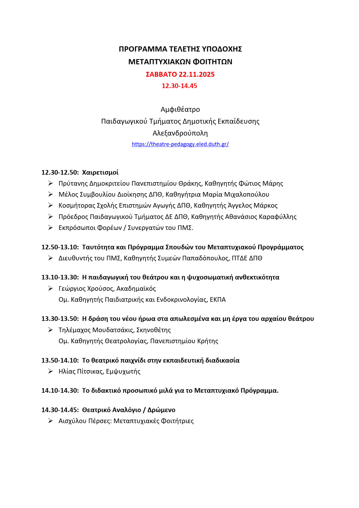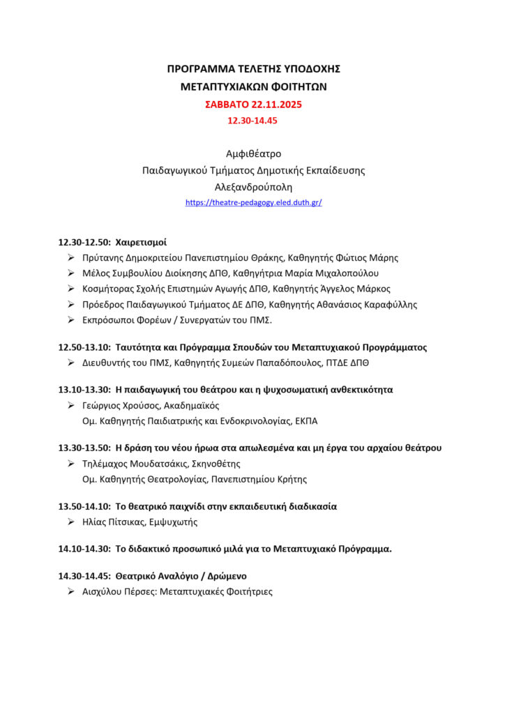 Πρόγραμμα Τελετής Υποδοχής Μεταπτυχιακών Φοιτητών Post author:Νίκος Μηνάογλου Post published:19 Νοεμβρίου, 2025 Post category:Εκδήλωση Please Share This Share this content Opens in a new window Opens in a new window Opens in a new window Opens in a new window Opens in a new window Opens in a new window Opens in a new window Opens in a new window Opens in a new window Opens in a new window You Might Also Like ΘΕΡΜΕΣ ΕΥΧΑΡΙΣΤΙΕΣ για τη συμμετοχή σας στην Τελετή Υποδοχής των Μεταπτυχιακών Φοιτητών 29 Νοεμβρίου, 2025 Τελετή Υποδοχής Μεταπτυχιακών Φοιτητών 19 Νοεμβρίου, 2025